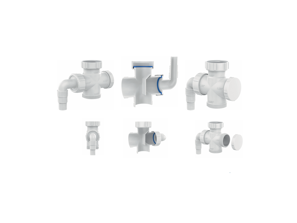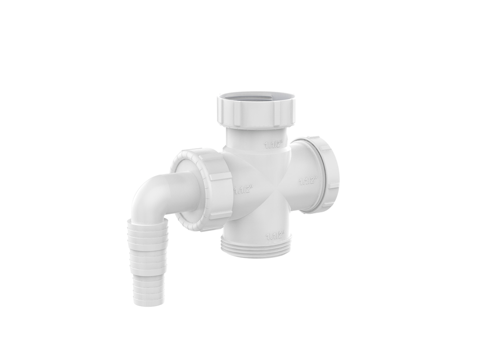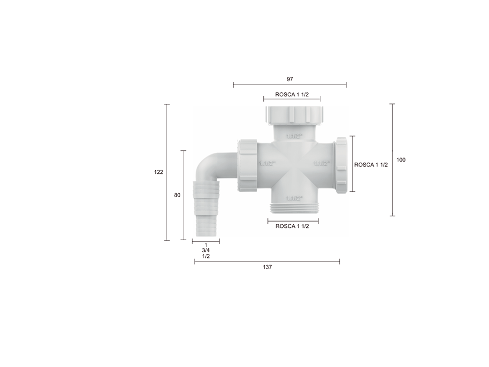 Possui quatro roscas de 1.1/2″ permitindo o uso em uma cuba dupla + saída da máquina de lavar.