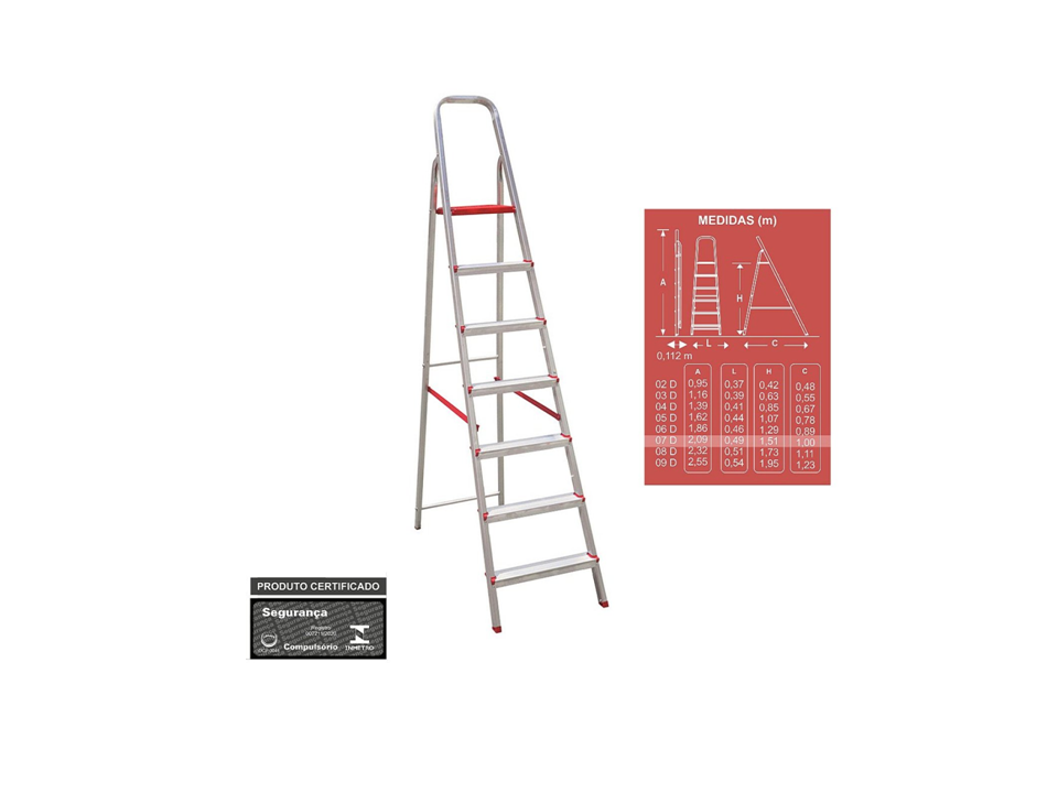 Escada Doméstica 7 Degraus em Alumínio BTF
