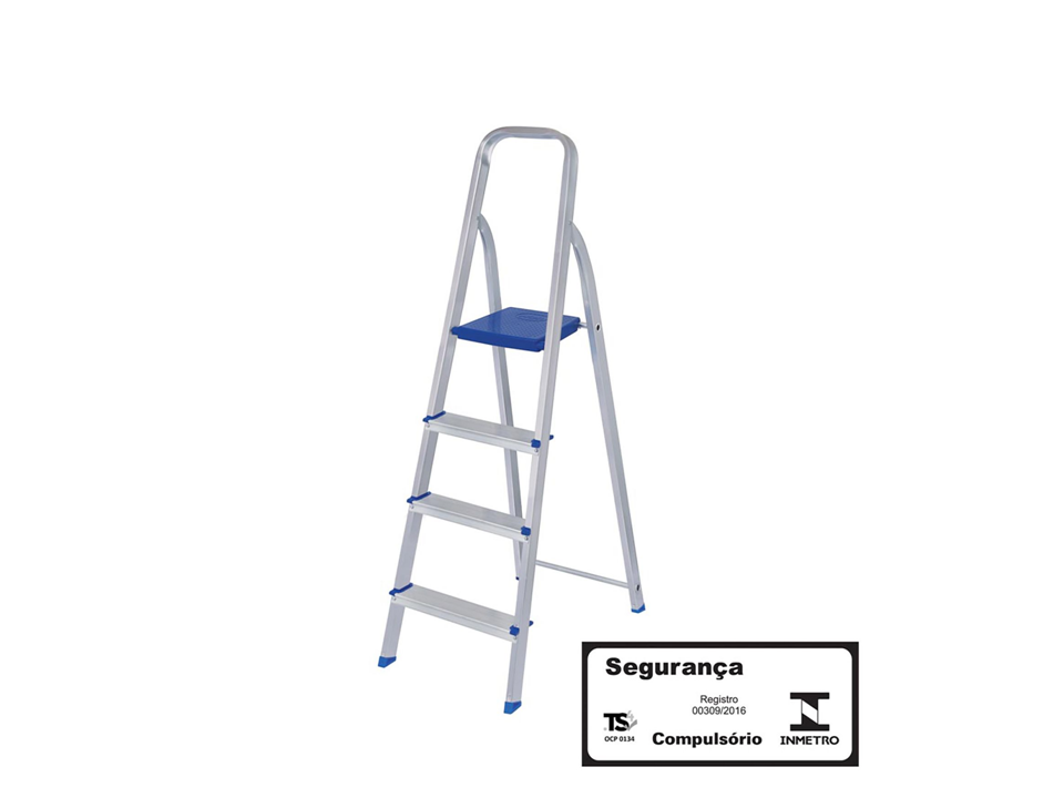 Este modelo possui três degraus com estrutura e chapas em alumínio, material super leve, durável (mesmo em áreas litorâneas!) e com peças plásticas em polipropileno de alta resistência.