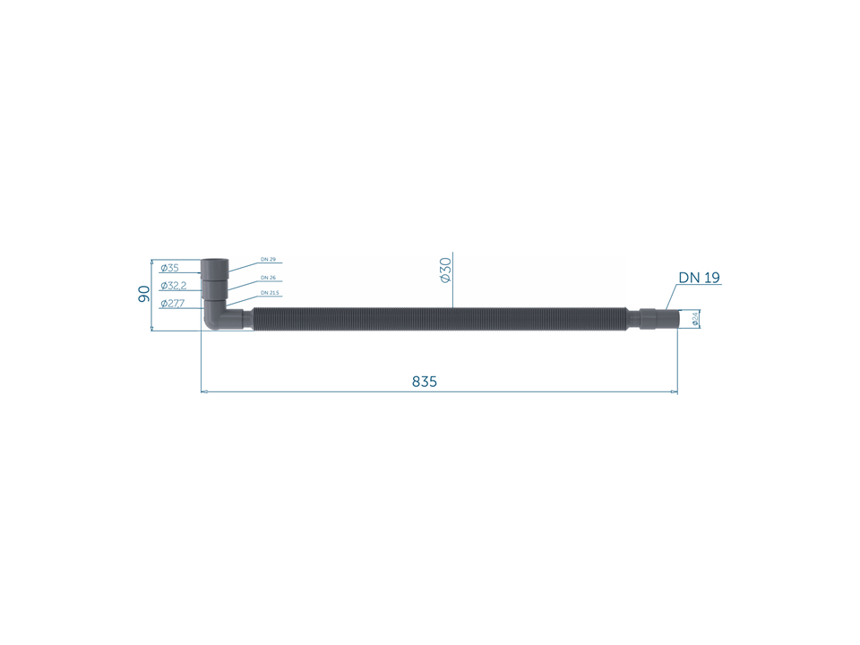 Conexões: DN19 mm, DN21,5 mm, DN26 mm, DN29 mm diâmetro interno tubo de máquina com terminal em conexão de 90°