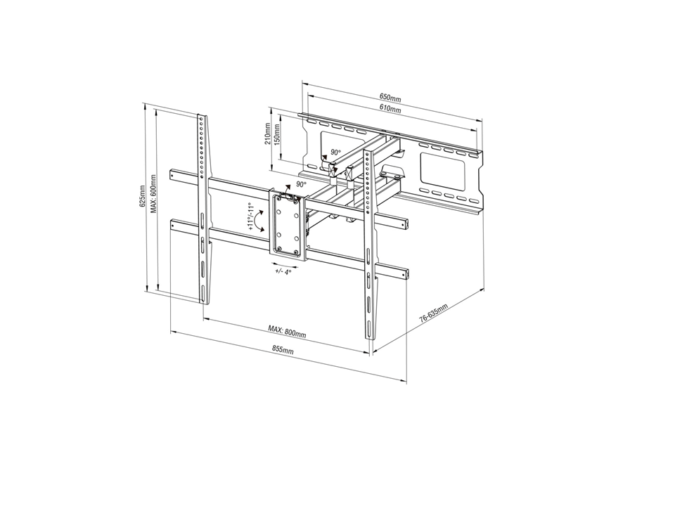 | Furação VESA | 200×100, 200×200, 300×200, 300×300, 400×200, 400×300, 400×400, 600×400, 800×400, 800x600mm |