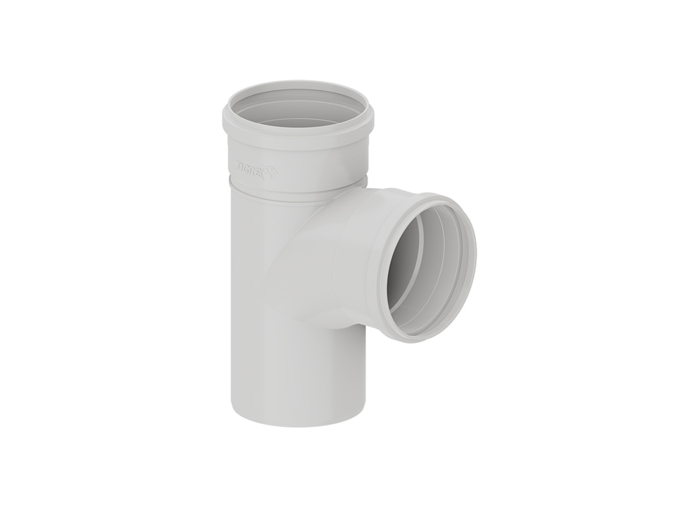 Tê (ou Te) 90 graus para tubo de esgoto predial série normal com bitola de 50mm x 50mm.