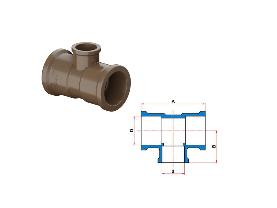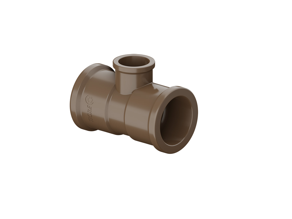 Cria uma ramificação (formato em T) mudando o diâmetro da tubulação principal para uma menor na saída lateral, otimizando o fluxo de água. Pode ser usado em diversas posições na rede hidráulica para direcionar o fluxo de água.