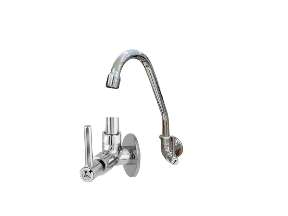 Torneira Parede Metal Cozinha Bica Alta articulada com bico arejador fixo C15 Leão Metais